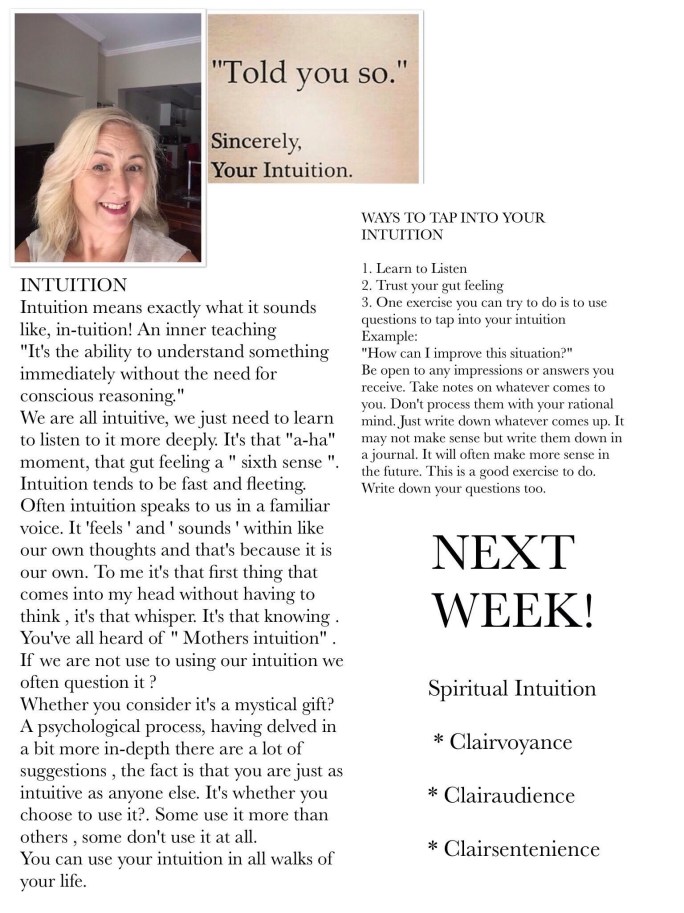 Intuition February 15, 2018 by reikiandcrystalhealingbylkc Share this:Tweet Email a link to a friend (Opens in new window) Email Print (Opens in new window) Print Like Loading... Published by reikiandcrystalhealingbylkc View all posts by reikiandcrystalhealingbylkc